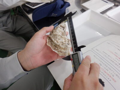 実習では、貝殻の成長に関わる炭酸カルシウム量を「炭素固定量」に換算する技術と方法を学びました。海洋が温暖化防止に貢献できる、そんな実感がもてる実習になりました。