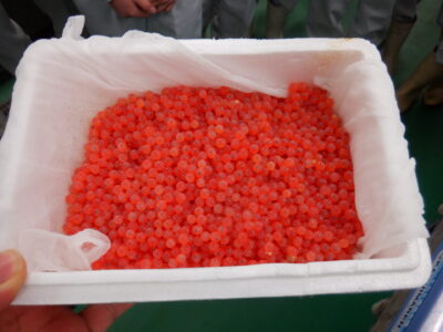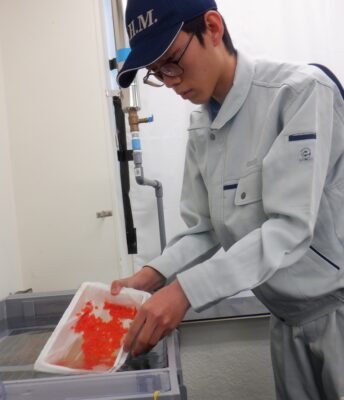 海洋科では、12月9日(火)に譲り受けたサクラマス卵約3,000粒の飼育を開始しました。今年で19回目となります。今朝から生徒たち皆の気持ちがシャキッとしています。この日は、例えば学校なら入学式、農業なら田植え日のようなハレの日みたいなものです。海洋科の長い長い取り組みの一番最初の始まりの日になるのですから(ちなみに本日は大安です)。