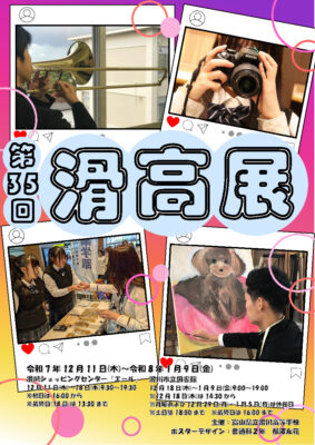 滑高展は、本校生徒が取り組んできた学習成果や作品を、地域のみなさまに広く公開する展示会です。