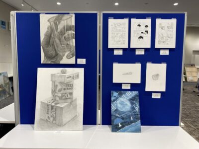第25回北陸三県絵画/デザインハイスクール選手権が、12月12日から14日までイオンモール白山にて開催されました。本校の美術部より、デザイン作品(ポスター)部門で1点が佳作を受賞し、基礎作品(デッサン)部門、創作作品(4コママンガ)部門、創作作品(ストーリーマンガ)部門に、計8点の出展をしました。
