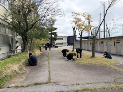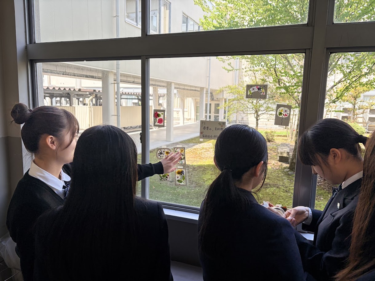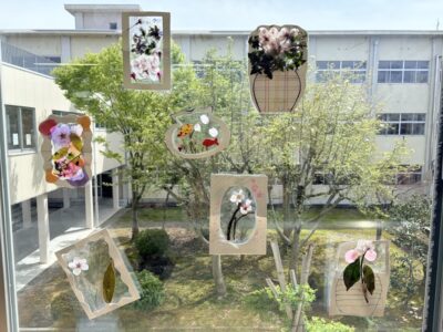 4月14日~17日、3学年家庭総合で「春集め」を実践しました。この活動は、季節を楽しみ自然と触れ合う遊びの1つであり、生徒は前庭や中庭で春の草花を集め、それぞれが工夫しながら思い思いに作品を仕上げました。制作後は活動を通して感じたことをまとめ、遊びやレクリエーション活動はこどもや高齢者にとってどのような効果が得られるかについて考えていきます。