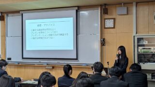 【薬業科】第3回薬業総会を行いました 2024.02.07 2024年2月7日(水)13:20~15:10 本校視聴覚室において、第3回薬業総会(進学報告会)を開催しました。 1,2年生が3年生の進学者の受験報告を聞きました。