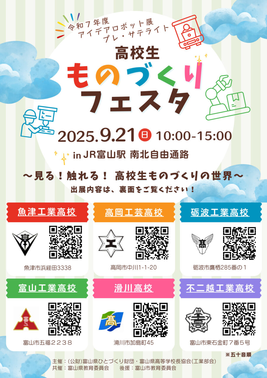 『発想』『創意工夫』や、そのおもしろさ等を楽しむものづくりフェスタに、薬業科が出展します。