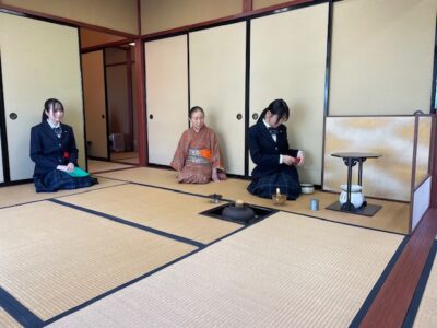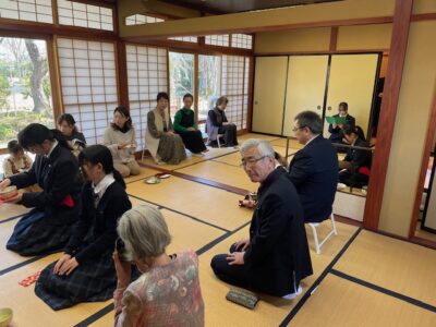 当日はお天気も良く、多くの方にお越しいただき、和やかで心あたたまるひとときを過ごすことができました。初めてお茶会に参加する生徒もいましたが、お客様の笑顔に支えられ、無事に終えることができました。