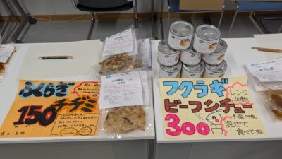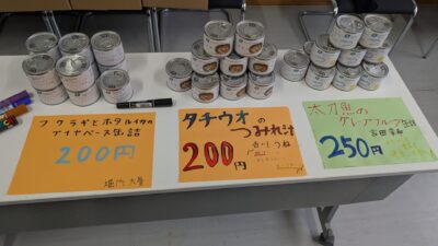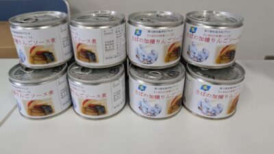 海洋科ではカニ缶、鯖缶の他に課題研究で開発した缶詰やレトルト食品も販売しています。