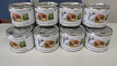 滑川高校で養殖しているサクラマスのバジルオイル缶