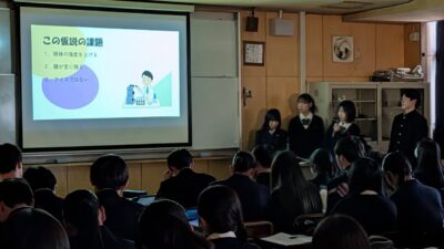 2月4日(水)2限~4限、本校第1視聴覚室にて薬業科3年生の課題研究発表会を行いました。