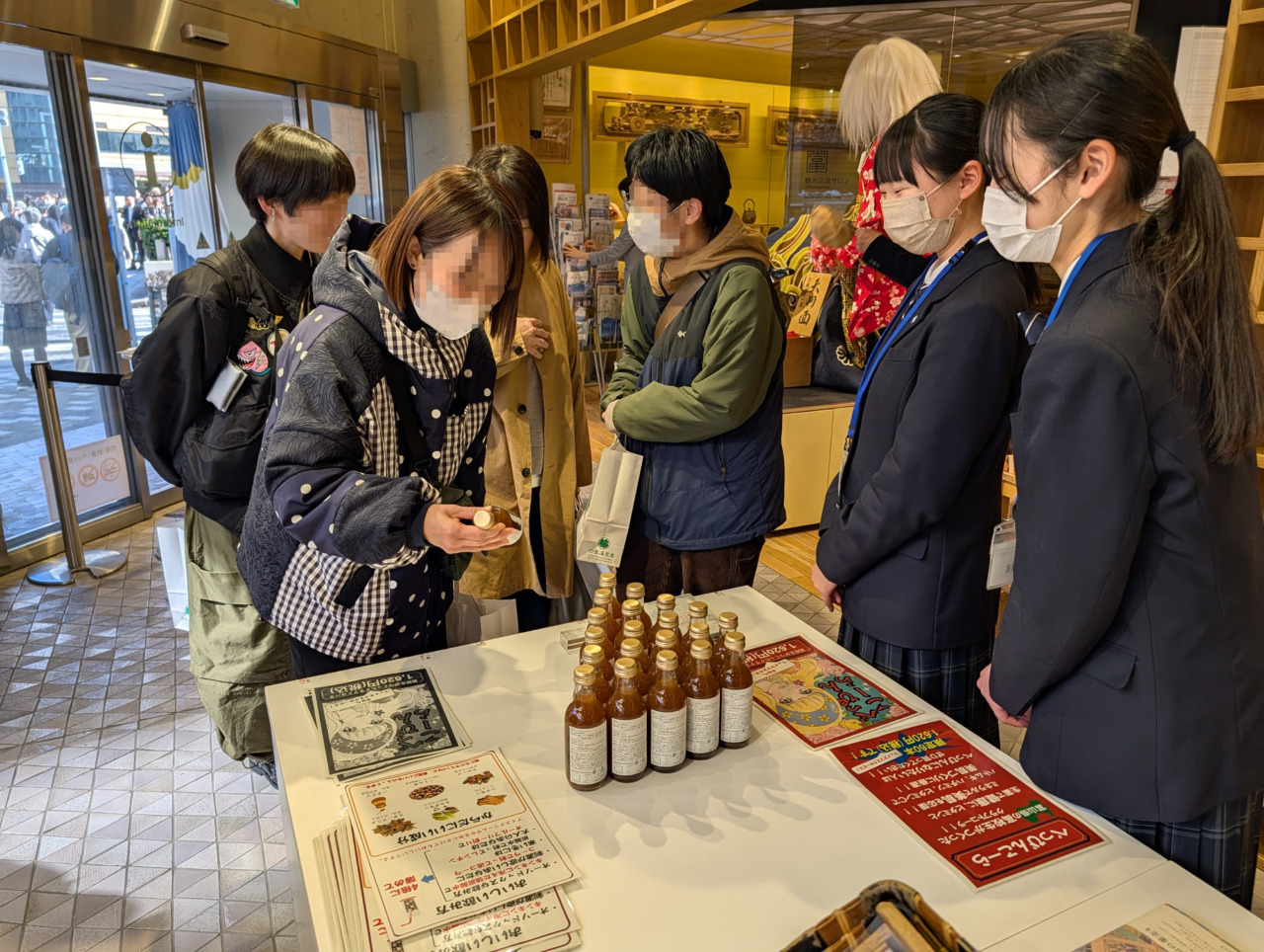 期間中、レトロなパッケージでおなじみの「富山のくすり」や、本校薬学部と(株)MAE様が開発した「べっぴんこーら」、「美しるく」などの化粧品等を販売しました。