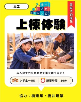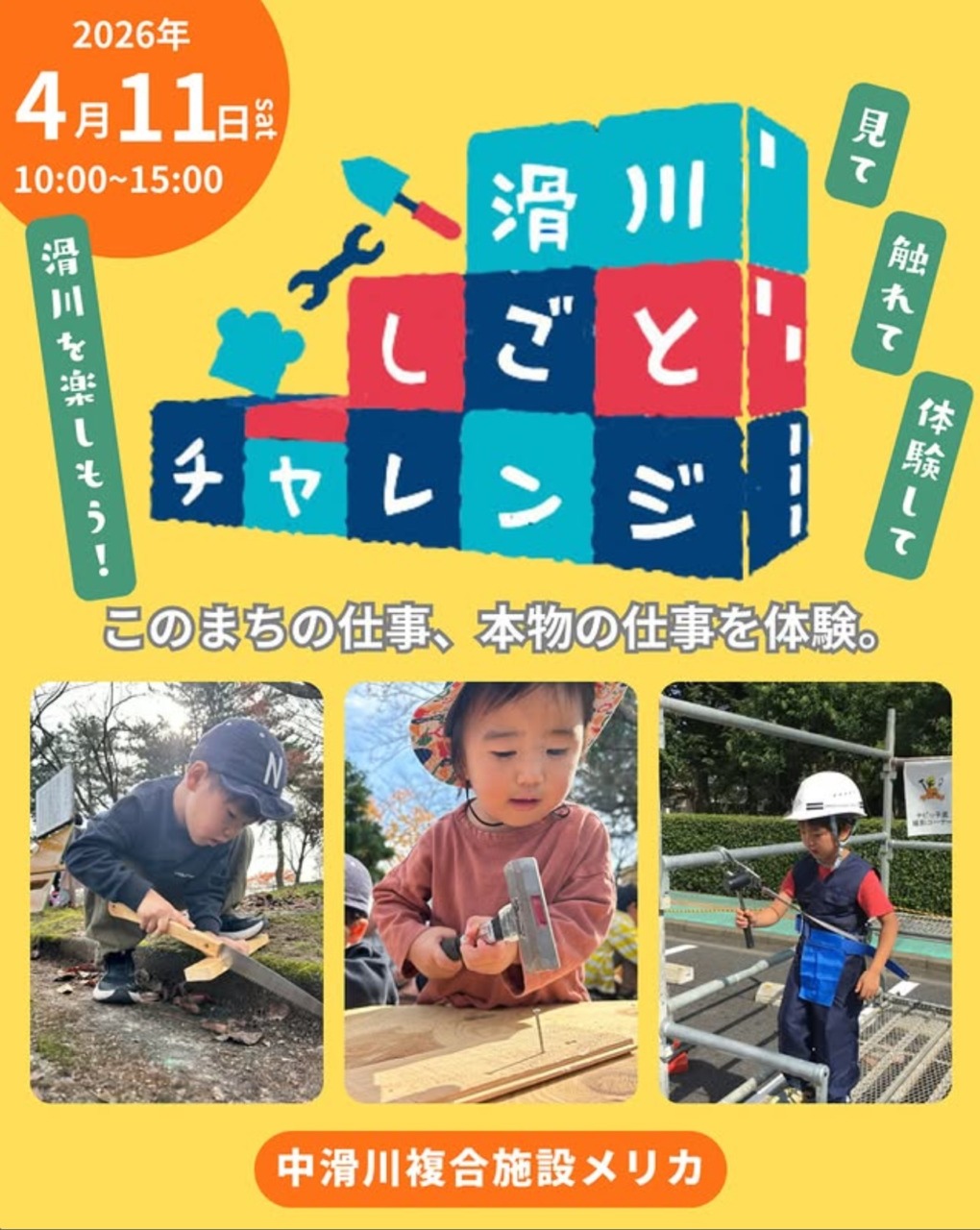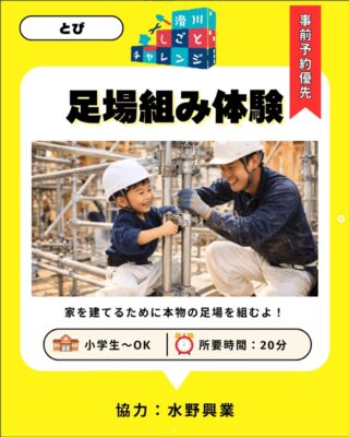 令和8年4月11日(土)10:00~15:00、中滑川複合施設メリカにて「滑川しごとチャレンジ」が開催されます。