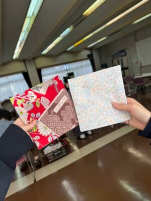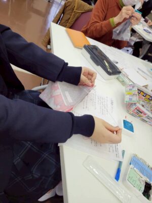 3月14日(土)に茶道裏千家淡交会魚津学校連絡協議会・魚津青年部コラボ企画の古帛紗作り教室に参加しました。1針1針丁寧に縫い、かわいい古帛紗を仕上げることができました。その後、おいしいお茶とお菓子をいただきました。茶を通して人生の先輩との交流の場となり、とても楽しい時間となりました。