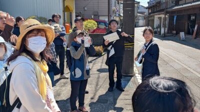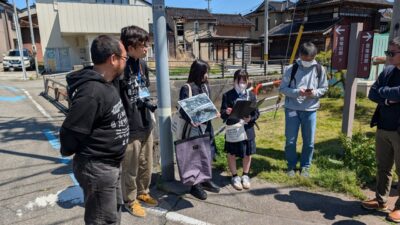 建物フェスではガイドツアーのガイドとして、中滑川から宮崎酒造までの歴史や建物を1時間かけて紹介しました。